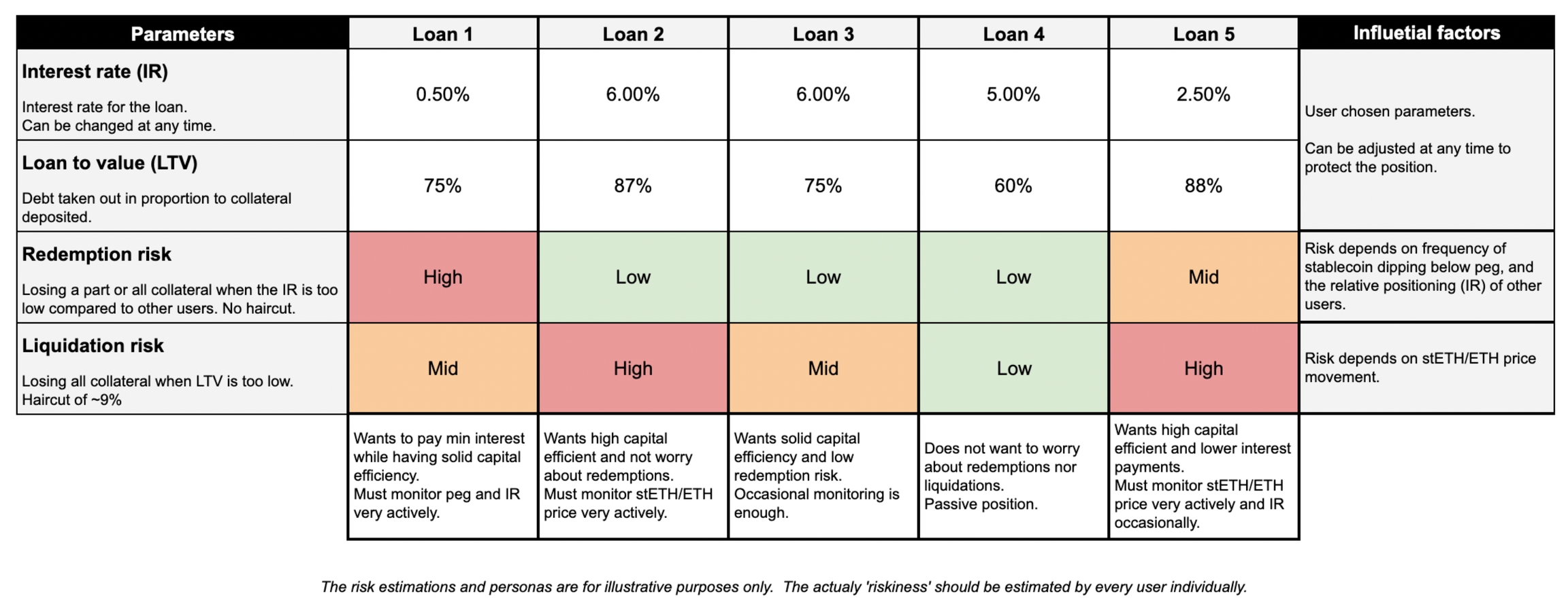 rETH/wstETH의 경우 손실은 부채의 20%로 제한되며, 담보 기준으로 최대 16.67%의 손실에 해당합니다.